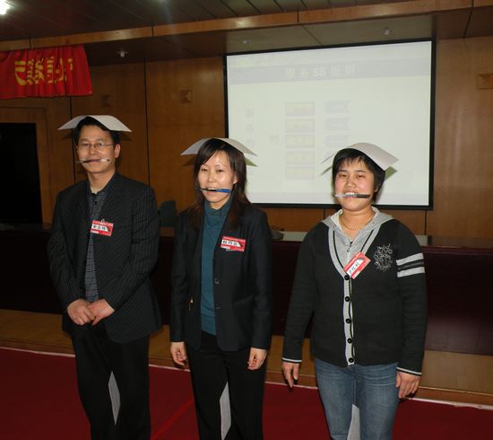 上圖:情境式培訓的家具商務(wù)禮儀的演練
